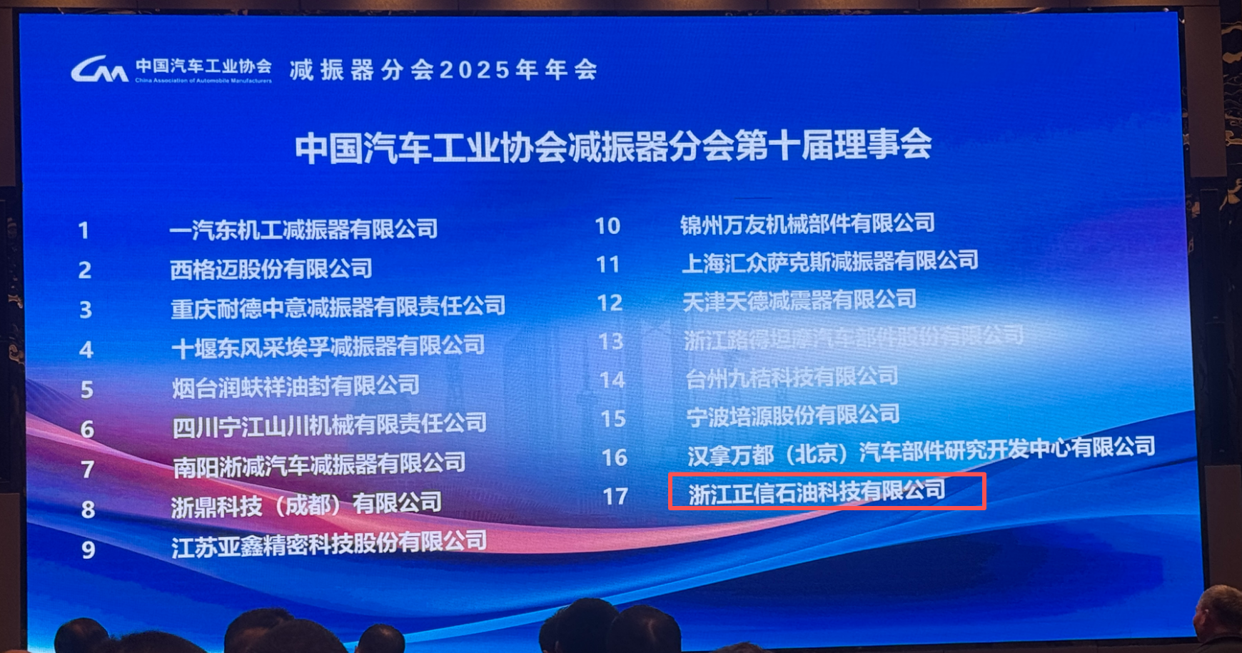 喜訊!浙江正信石油科技有限公司入選中國汽車工業(yè)協(xié)會(huì)減振器分會(huì)第十屆理事單位